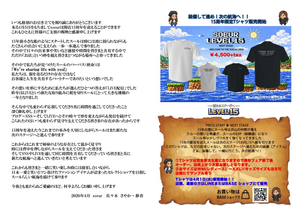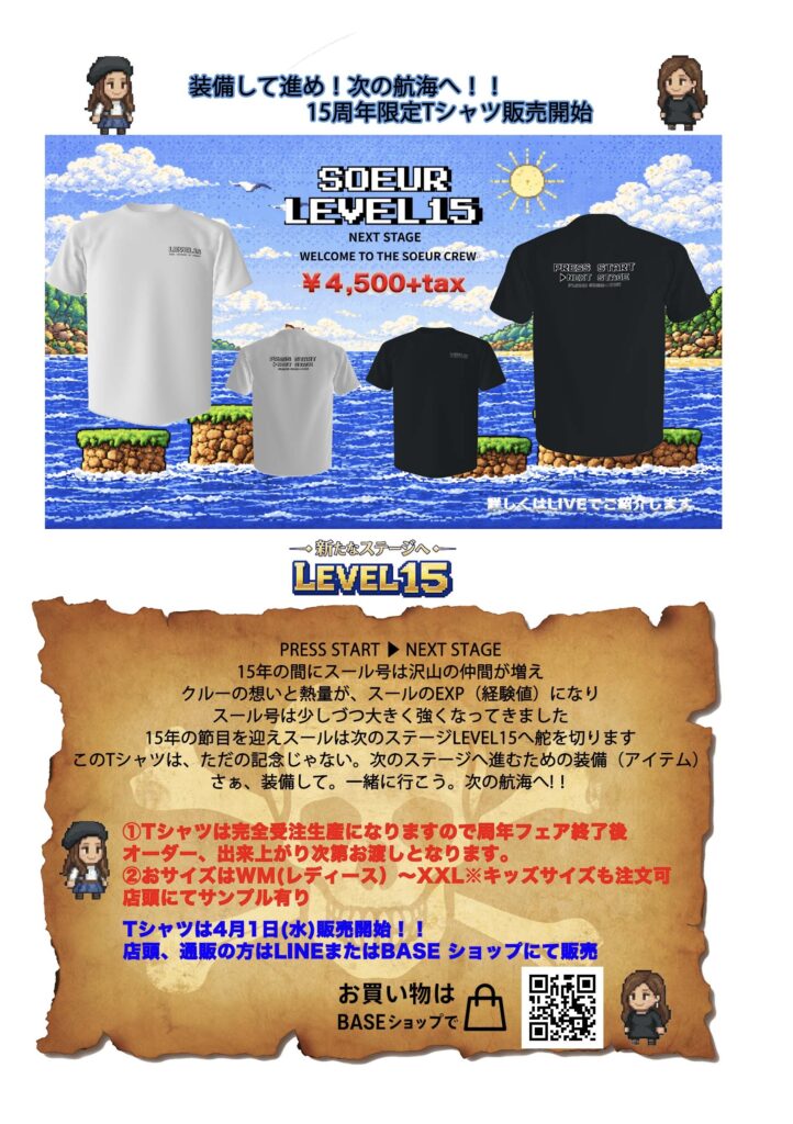 15周年限定Tシャツの注文はこちらから↓4月5日(日)受注締め切り